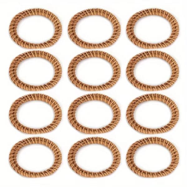 Chaque pièce du lot de 12 ronds de serviette en rotin est soigneusement tressée à la main avec des fibres naturelles robustes. Leur texture légère et leur solidité en font des accessoires durables, que l’on peut utiliser jour après jour sans perte de qualité. Leur forme circulaire épouse parfaitement les serviettes en tissu et s’adapte à toutes les tailles. Pensé comme un accessoire rotin de qualité, cet ensemble séduit autant par son style artisanal que par son utilité concrète au quotidien.