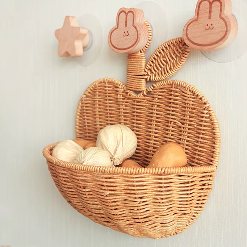 Avec sa silhouette de pomme stylisée et sa couleur beige douce, ce panier mural attire le regard sans dominer l’espace. Le dessin est simple, mais expressif. Il s’accroche aisément sur tout type de mur et permet de structurer une pièce avec subtilité. Cet accessoire rotin joue un rôle décoratif tout en gardant une fonction utile.