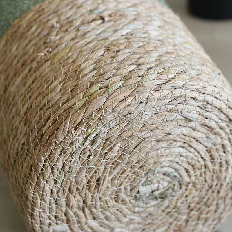 Le haut vert de ce panier est l’élément qui révèle toute la singularité du design. Ce contraste précis avec la teinte beige du rotin crée un point focal doux et graphique. La simplicité de la forme arrondie s’équilibre parfaitement avec cette note de couleur, qui évoque la nature tout en modernisant l’objet. Le panier devient alors un accent décoratif intelligent, à la fois discret et distinctif.