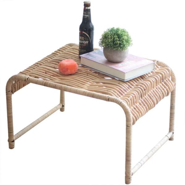 La forme rectangulaire de cette table basse en osier maximise l’espace disponible pour vos accessoires de salon, livres, ou décorations. La surface généreuse est soutenue par une structure robuste en rotin, combinant esthétique et praticité pour un usage quotidien et durable.