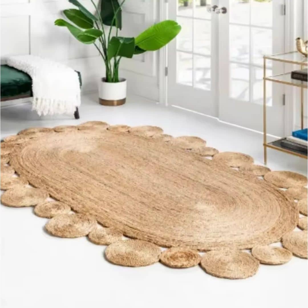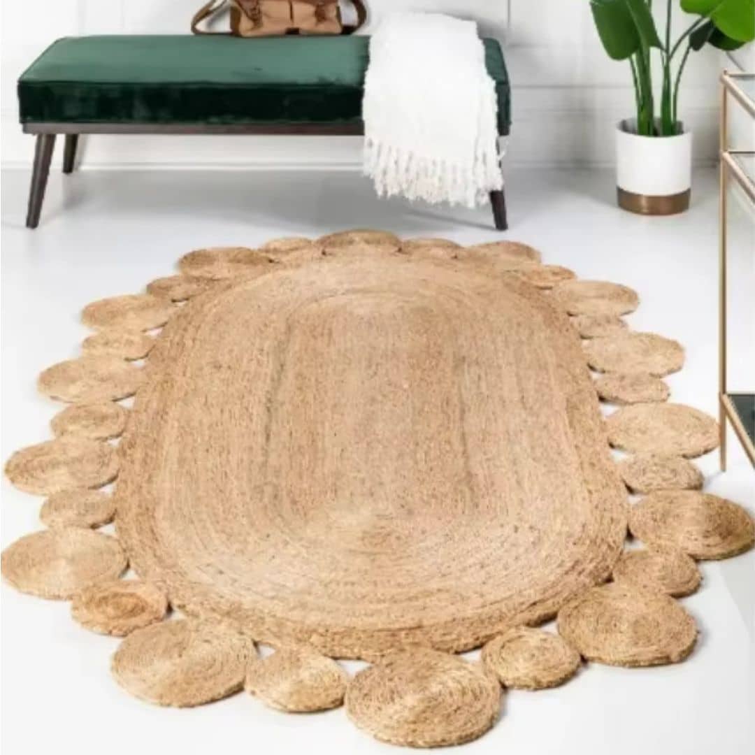 Avec sa forme originale et ses détails subtils, ce tapis devient un véritable point d’attraction dans votre décoration. Sa texture brute associée à sa douceur visuelle lui permet de délimiter naturellement un espace sans le cloisonner. Sa forme ovale insuffle fluidité et mouvement à la pièce, tout en respectant l’élégance d’une décoration naturelle soignée.