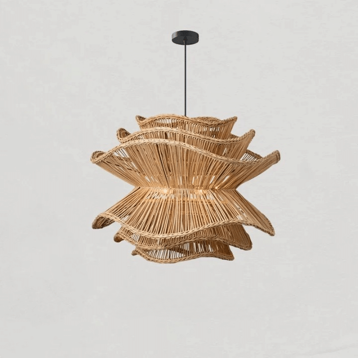 Fabriqué à partir d’osier de haute qualité, ce luminaire effet paille se distingue par sa durabilité et son aspect écologique. Le choix de l’osier, avec sa teinte marron naturelle, souligne un engagement envers la beauté naturelle et la durabilité, tout en offrant une lumière chaleureuse et accueillante.