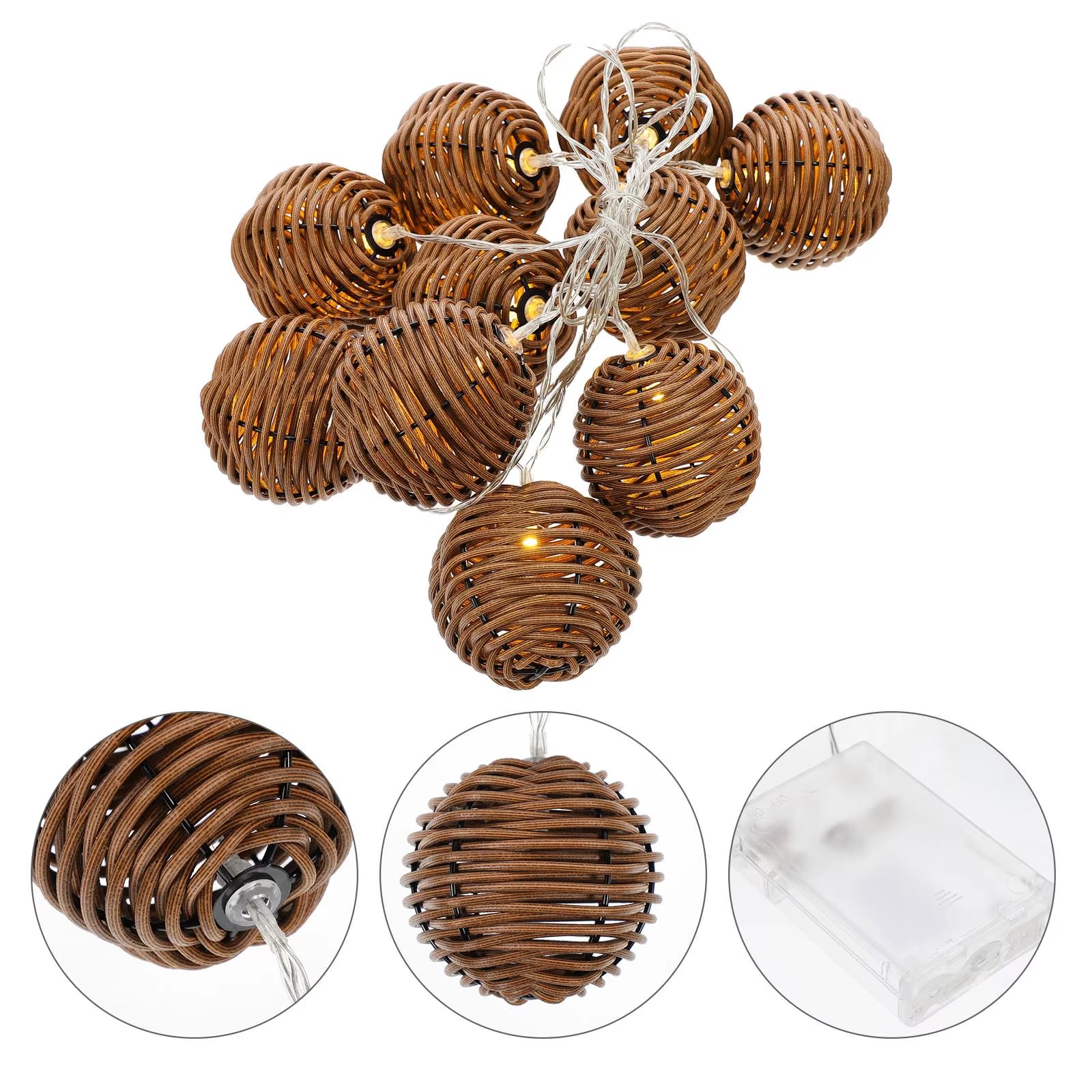 Souple, légère et pratique, cette guirlande diffuse une lumière tamisée qui réchauffe l’atmosphère sans l’alourdir. La déco effet rotin met en valeur ses textures naturelles et renforce son style rustique. Sa teinte marron crée un contraste subtil avec les éléments plus clairs de votre décor. Accrochée, posée ou enroulée, elle s’adapte à tous les espaces. Durable et élégante, elle transforme chaque recoin en coin de fête, alliant tradition et modernité dans un équilibre parfait.