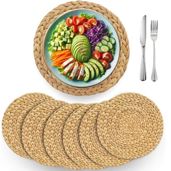 Cette deco rotin capture l’essence de l’art de vivre rural français avec son esthétique pastorale qui évoque les fermes restaurées et les maisons de famille traditionnelles. Le design champêtre de ces sets circulaires apporte instantanément cette douceur de vivre qui caractérise les intérieurs de charme où règnent simplicité et authenticité. Cette ambiance bucolique créée une atmosphère détendue qui favorise les conversations chaleureuses et les moments de complicité autour de votre table familiale.
